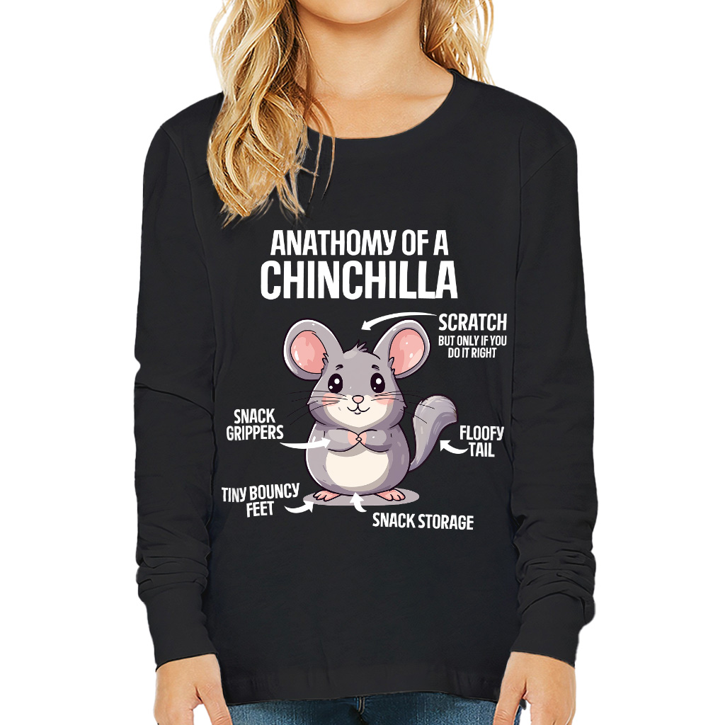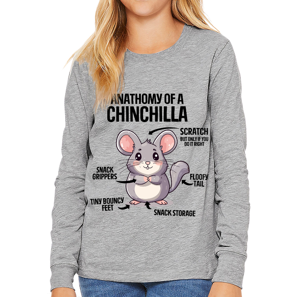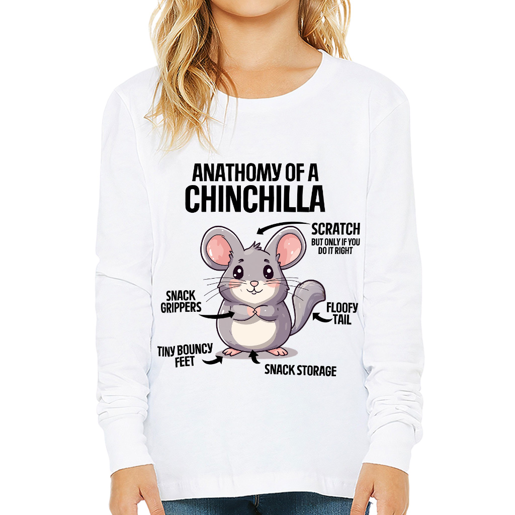 Anatomy Of A Chinchilla Kids’ Long Sleeve T-Shirt – Chinchilla Gift T-Shirt for Kids – Funny Animal Tee for Boys Girls