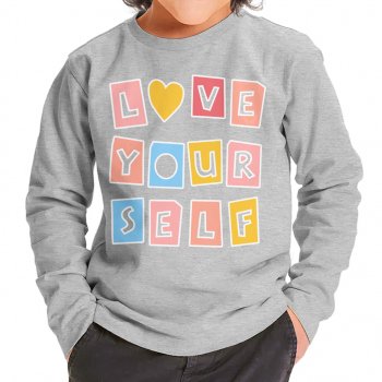 Love Yourself Toddler Long Sleeve T-Shirt – Self Care Boy Girl Tee – Positive Message T-Shirt for Kids