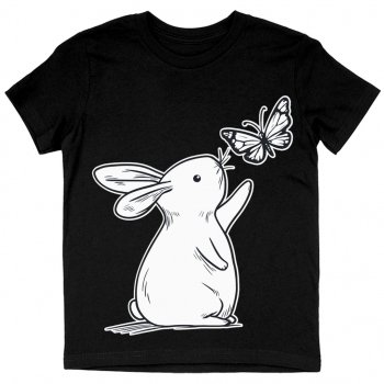 Butterfly Rabbit Kids’ Cotton T-Shirt – Rabbit Lover Short Sleeve Tee – Cute Rabbit T-Shirt for Kids