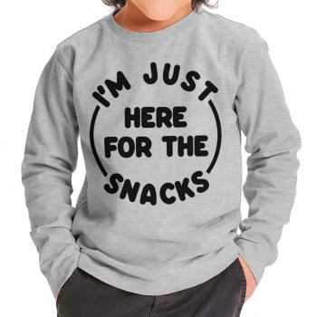 I’m Just Here for the Snacks Toddler Long Sleeve T-Shirt – Funny Print Boy Girl Tee – Foodie T-Shirt for Kids