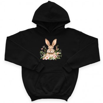 Floral Bunny Kids’ Hoodie – Spring Graphic Hooded Sweatshirt – Trendy Bunny Hoodie for Kids