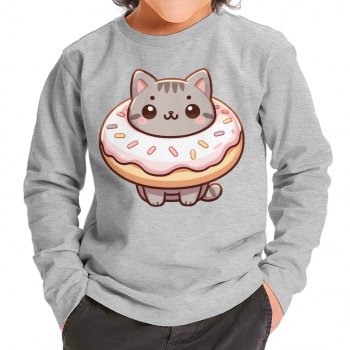 Donut Cat Toddler Long Sleeve T-Shirt – Cute Design Boy Girl Tee – Kawaii Print T-Shirt for Kids