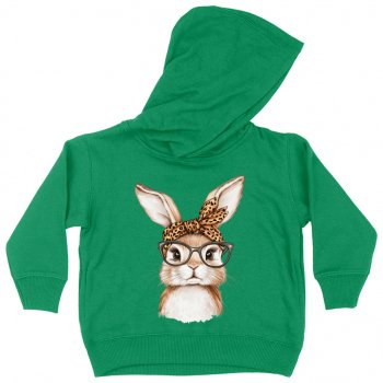 Bunny With Glasses Toddler Hoodie – Bunny Graphic Hoodie for Kids – Bunny Lover Hooded Pullover