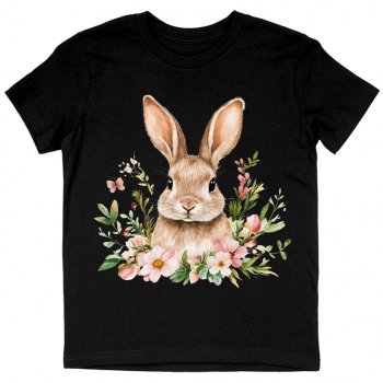 Floral Bunny Kids’ Cotton T-Shirt – Spring Graphic Short Sleeve Tee – Trendy Bunny T-Shirt for Kids