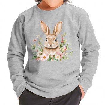 Floral Bunny Toddler Long Sleeve T-Shirt – Trendy Bunny Boy Girl Tee – Spring Graphic T-Shirt for Kids