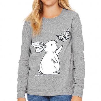 Butterfly Rabbit Kids’ Long Sleeve T-Shirt – Rabbit Lover T-Shirt for Kids – Cute Rabbit Tee for Boys Girls