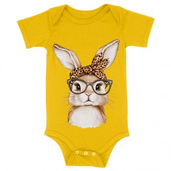 Bunny With Glasses Baby Onesie – Bunny Graphic Baby Bodysuit – Bunny Lover Baby One-Piece