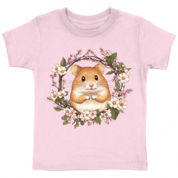 Floral Hamster Toddler Cotton T-Shirt – Cute Rodent Short Sleeve Tee – Small Pet T-Shirt for Kids