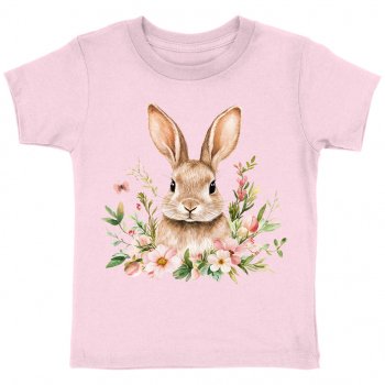 Floral Bunny Toddler Cotton T-Shirt – Spring Graphic Short Sleeve Tee – Trendy Bunny T-Shirt for Kids