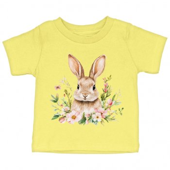 Floral Bunny Baby T-Shirt – Spring Graphic T-Shirt for Kids – Trendy Bunny Short Sleeve Tee