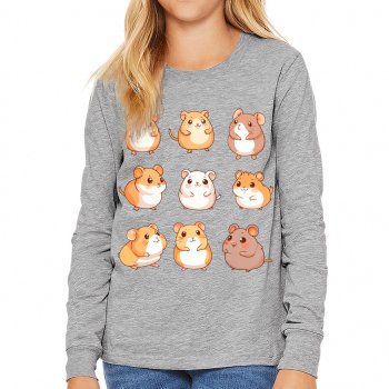 Cute Hamsters Kids’ Long Sleeve T-Shirt – Animal Lover Gift T-Shirt for Kids – Kawaii Tee for Boys Girls