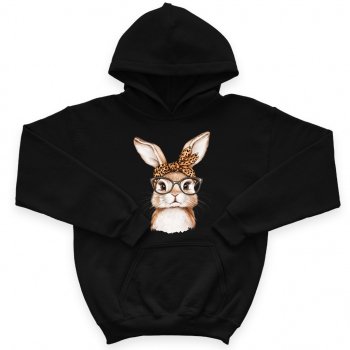 Bunny With Glasses Kids’ Hoodie – Bunny Graphic Hooded Sweatshirt – Bunny Lover Hoodie for Kids