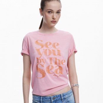 Desigual Women’s Pink Printed Cotton T-Shirt