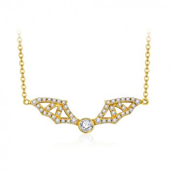 3mm Round Moissanite Bat Wings Pendant Necklace in Sterling Silver