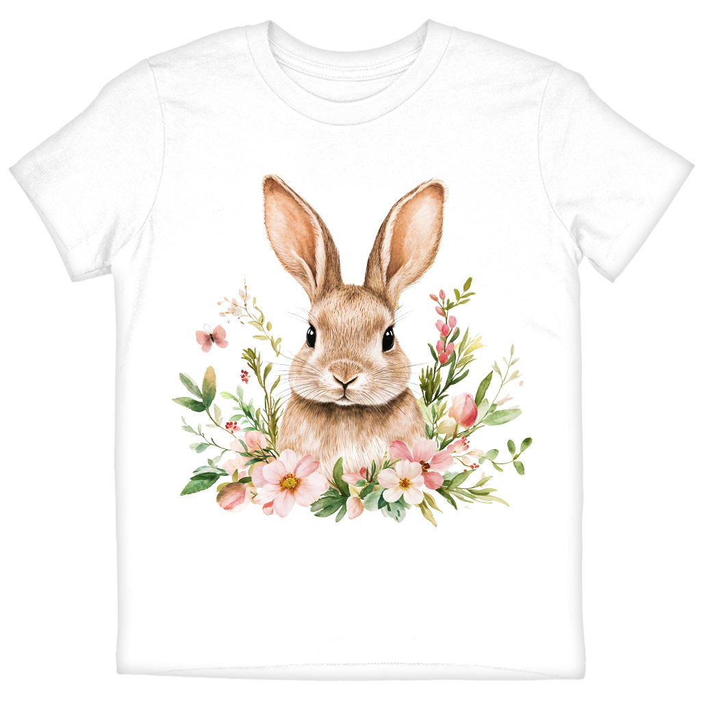 Floral Bunny Kids’ Cotton T-Shirt – Spring Graphic Short Sleeve Tee – Trendy Bunny T-Shirt for Kids