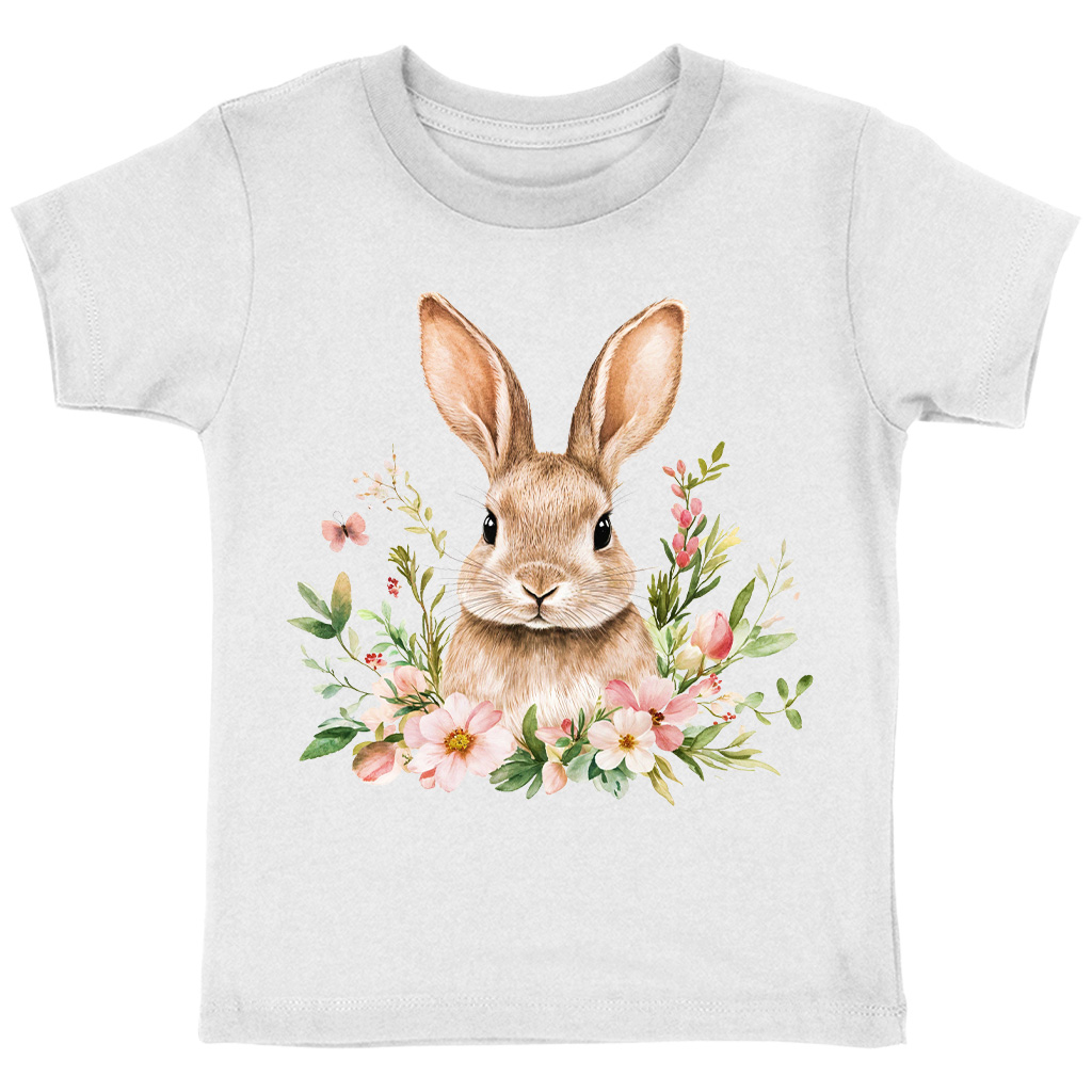 Floral Bunny Toddler Cotton T-Shirt – Spring Graphic Short Sleeve Tee – Trendy Bunny T-Shirt for Kids
