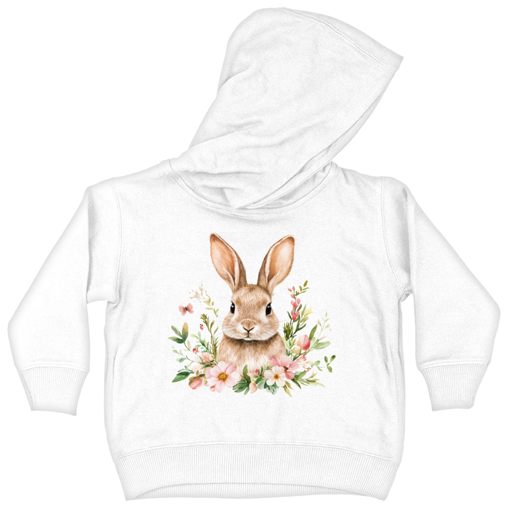 Floral Bunny Toddler Hoodie is no ordinary piece of clothing. Its top-stitched hood and