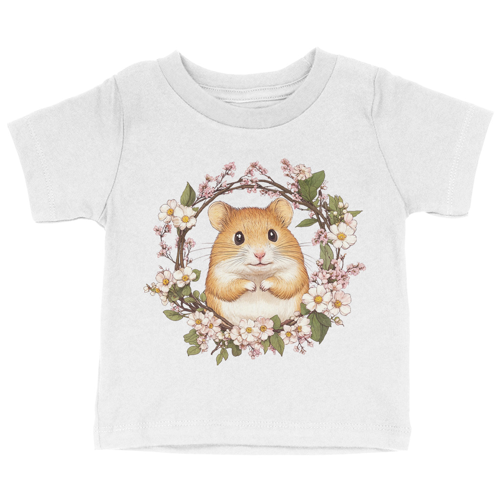 Floral Hamster Baby T-Shirt – Cute Rodent T-Shirt for Kids – Small Pet Short Sleeve Tee