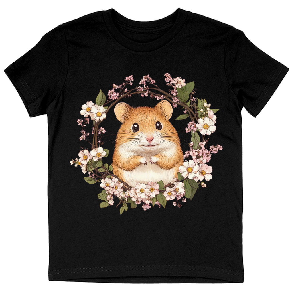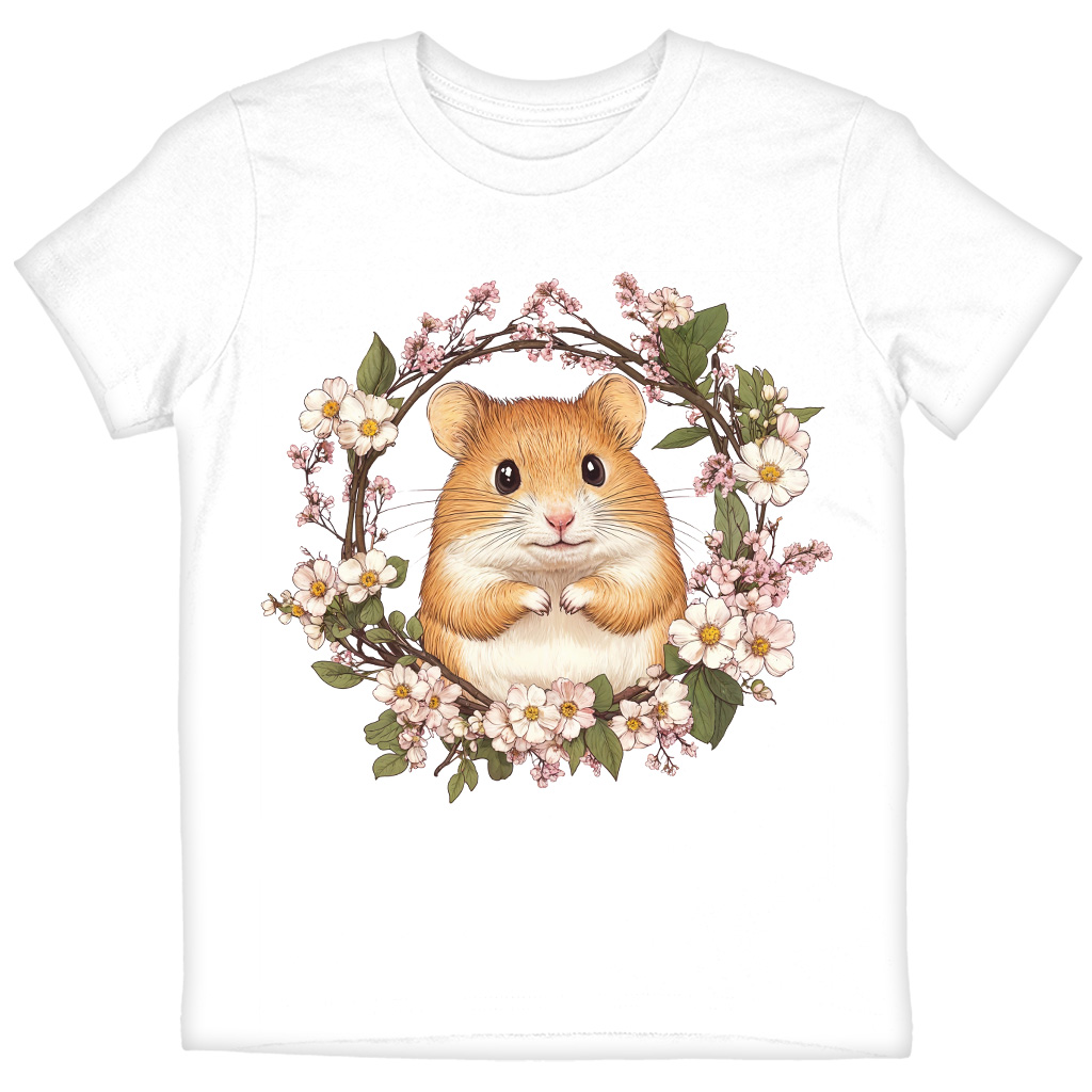 Floral Hamster Kids’ Cotton T-Shirt – Cute Rodent Short Sleeve Tee – Small Pet T-Shirt for Kids