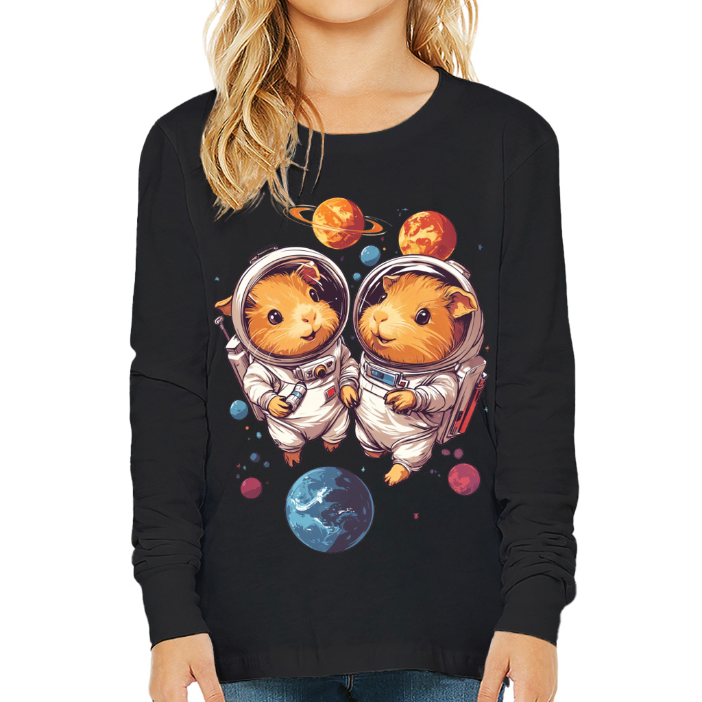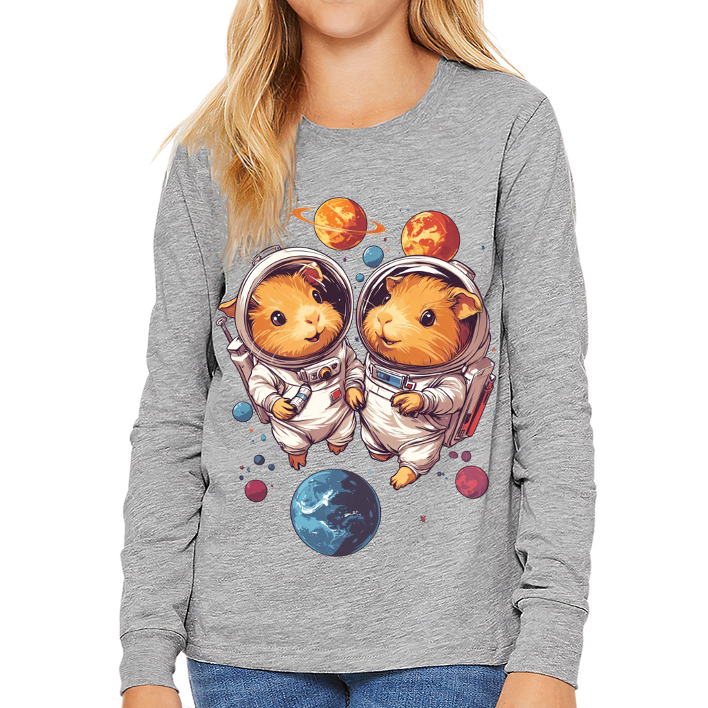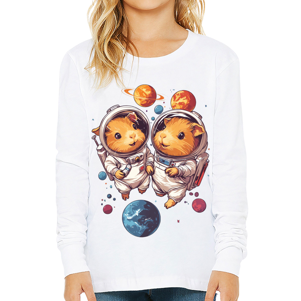 Hamsters in Space Kids’ Long Sleeve T-Shirt – Funny T-Shirt for Kids – Cute Astronaut Tee for Boys Girls