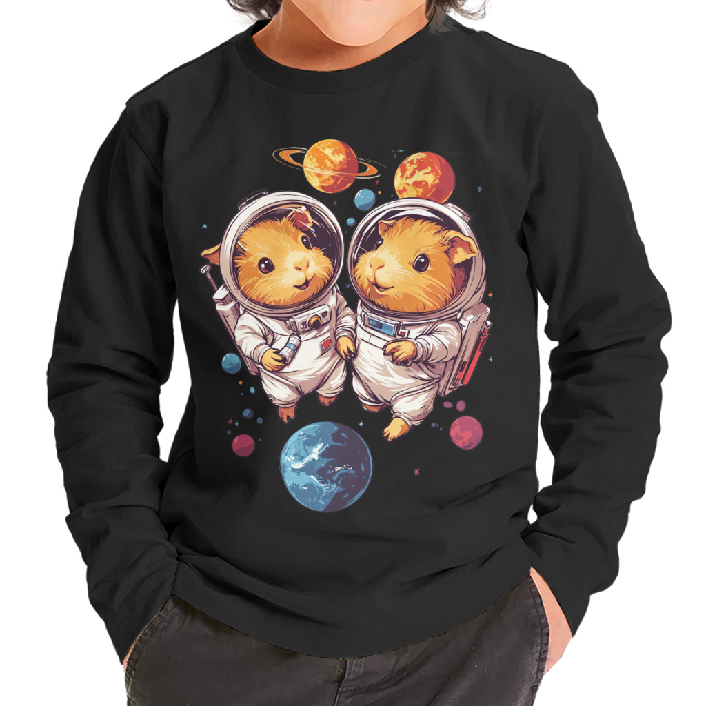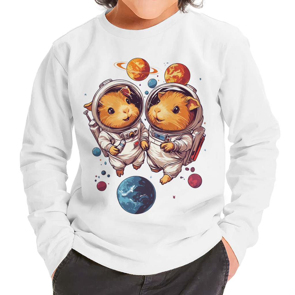 Hamsters in Space Toddler Long Sleeve T-Shirt – Funny Boy Girl Tee – Cute Astronaut T-Shirt for Kids