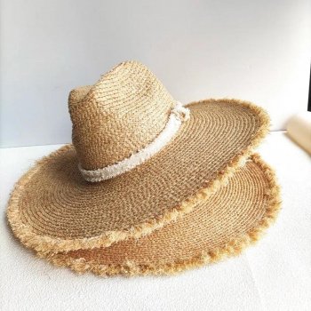 Natural Raffia Wide Brim Beach Hat with Tassels Women’s Summer Sun Hat