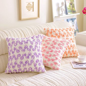 Embroidered 18×18 Inch Plush Throw Pillow Cover – Floral Decorative Cushion Case