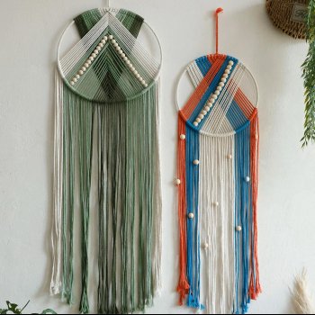 Handmade Macrame Wall Hanging with Fringe & Wooden Beads