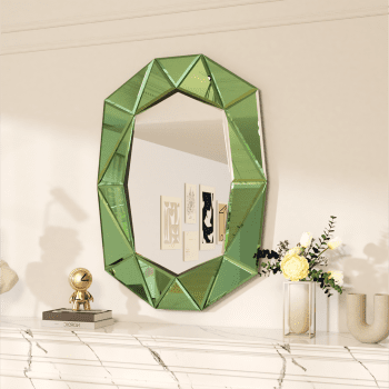 40 Inch Asymmetrical Venetian Wall Mirror with Glass Inlay