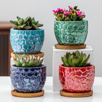 Modern Ceramic Marbled Succulent Vase – Electroplated Desktop Flower Pot