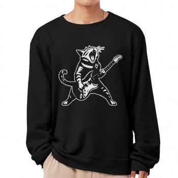 Funny Guitar Cat Sweatshirt – Cat Themed Gift Crewneck Sweatshirt – Cool Cat Print Unisex Sweatshirt