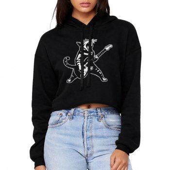 Funny Guitar Cat Women’s Cropped Hoodie – Cool Cat Print Hooded Sweatshirt – Cat Themed Gift Super Crop Top Hoodies
