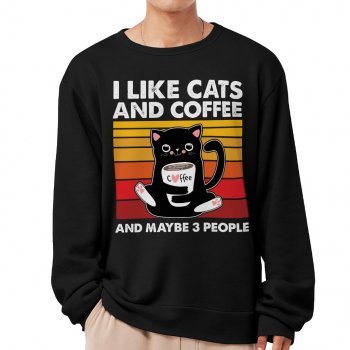 I Like Cats And Coffee Sweatshirt – Vintage Cat Crewneck Sweatshirt – Coffee Lover Unisex Sweatshirt