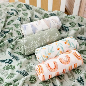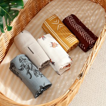 Soft Bamboo Muslin Swaddle Blanket – Animal Print Multi-Use Baby Wrap 47x43in