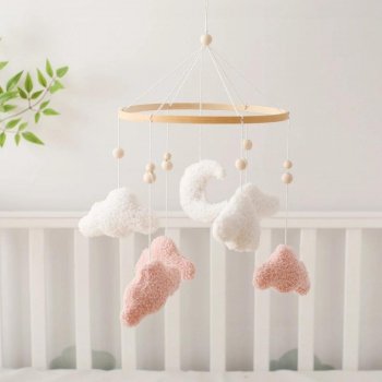 Musical Baby Crib Mobile with Rattles – Cloud & Cartoon Pendant for Newborns