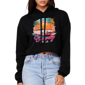 Beverly Hills Women’s Cropped Hoodie – Retro Car Hooded Sweatshirt – California Super Crop Top Hoodies