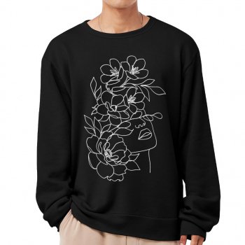 Floral line face Sweatshirt – Outline graphic Crewneck Sweatshirt – Flowers print Unisex Sweatshirt