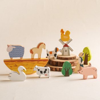 Wooden Farm Animal Balance & Stacking Toy Set for Toddlers (Montessori Style)