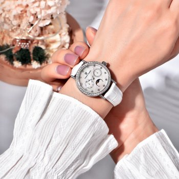 Elegant 33MM Women’s Quartz Watch with Moonphase & Sapphire Glass